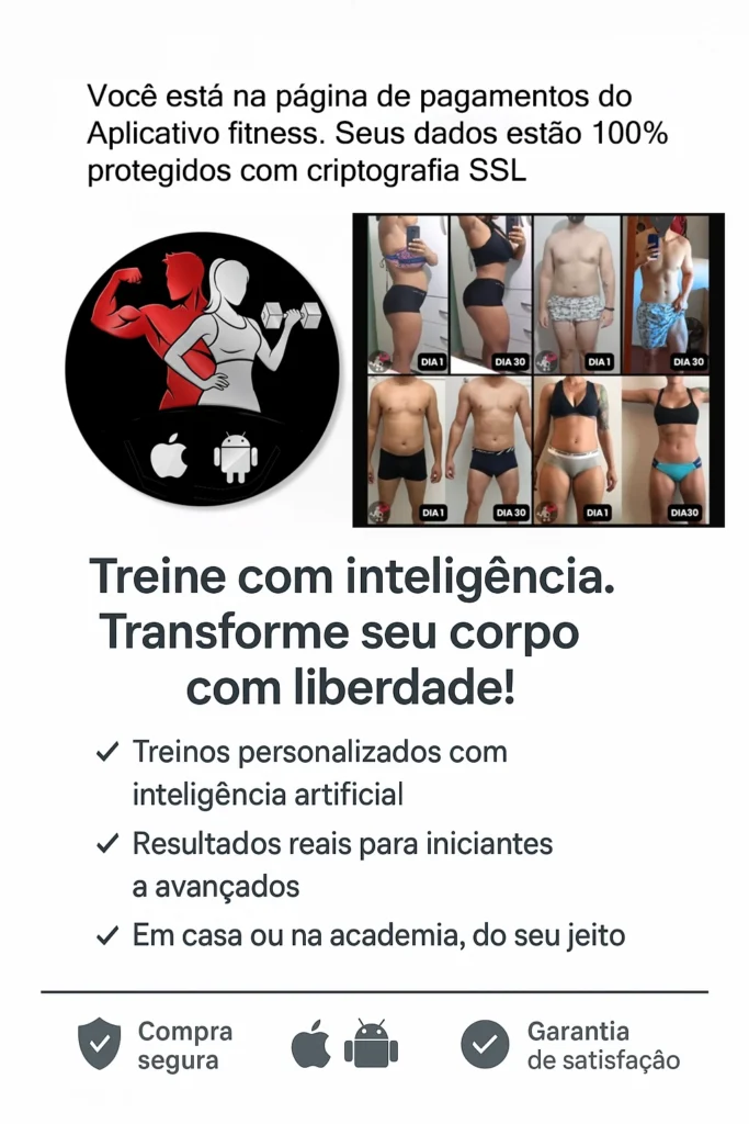 Isso mesmo: você tem 30 dias completos para testar todos os recursos, treinar com nossos programas, seguir as dietas personalizadas e acompanhar sua evolução de perto. Se, por qualquer motivo, você sentir que o app não é para você — basta enviar uma mensagem e devolvemos 100% do seu dinheiro, sem burocracia e sem perguntas.
